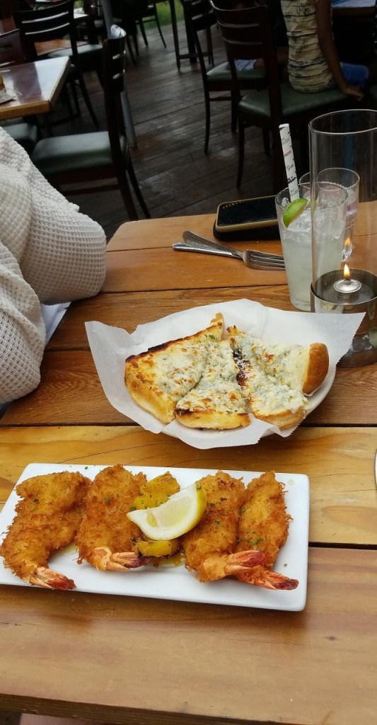 Riva grill was the last restaurant we ate at before we left South Lake Tahoe, we found out about it through our hotel actually as the postmark spa suites offers 15% off for guests staying with them. Needless to say we had to try the restaurant our hotel was sponsoring even if it looked a little on the pricy side. On the night of our last day in Tahoe we finally made it over to the Riva grill where we offered a table without waiting for more than 5 mins which was very pleasant. The menu at Riva grill had a decent amount of selections but I ended up getting the chicken risotto which was mouth watering to say the least, we also ordered some small appetizers like garlic cheese bread and coconut fried prawns, and of course 2 margaritas. Overall the food, appetizers, and drinks were very good, I would say it was a little more pricey than other restaurants in the area but the quality of food made it worth while.